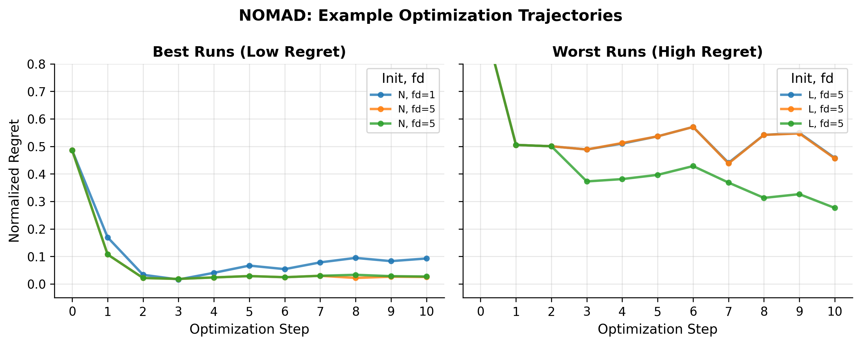 Optimization trajectories are heavily initialization-dependent. LLM agents rapidly escape poor configurations but provide diminishing returns near strong start points. Rather than acting as deep structural searchers, they behave mostly as corrective heuristics that do not consistently outperform random search.